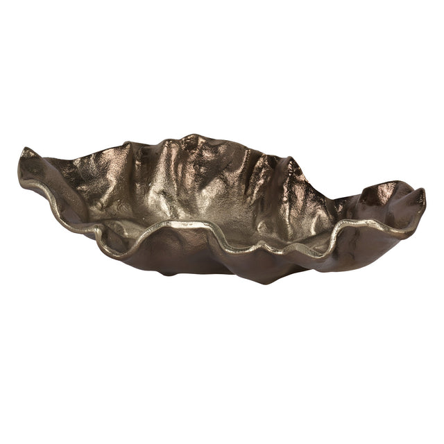 The Lowe Cast Aluminium Bowl Large width 43cm is a striking home decor bowl crafted from antique brass cast aluminium. Its design features a natural, organic shape, seamlessly formed to create an elegant and sophisticated look. Each bowl is meticulously handcrafted by skilled artisans, ensuring that no two bowls are alike. The Lowe Cast Aluminium Bowl is available in two sizes. This range is for decorative use only, it is not food-safe or water-safe.
