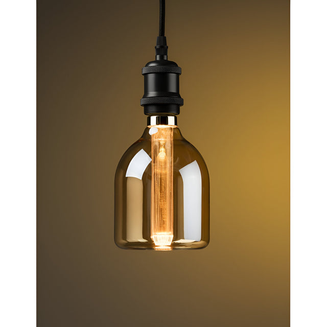 The Luna 3W Non-Dimmable Chalice Filament Bulb blends retro artistry with warm, modern ambiance. Its oversized chalice-shaped amber glass and intricately etched decorative filament create a captivating glow reminiscent of early 20th-century craftsmanship. With a 3W power output producing 130 lumens of soft illumination at an ultra-warm 1800K color temperature, this E27 bulb is ideal for ambient lighting in living spaces, dining areas, and hospitality venues. The etched internal pattern enhances visual texture while diffusing light evenly, filling the room with a soothing golden tone. Perfect for pendant fittings or vintage-style fixtures, it delivers the appearance of a traditional filament lamp while benefiting from LED efficiency and longevity. Designed for aesthetic impact and consistent performance, the Luna Chalice Bulb transforms everyday lighting into a refined decorative feature. *Pendant not included