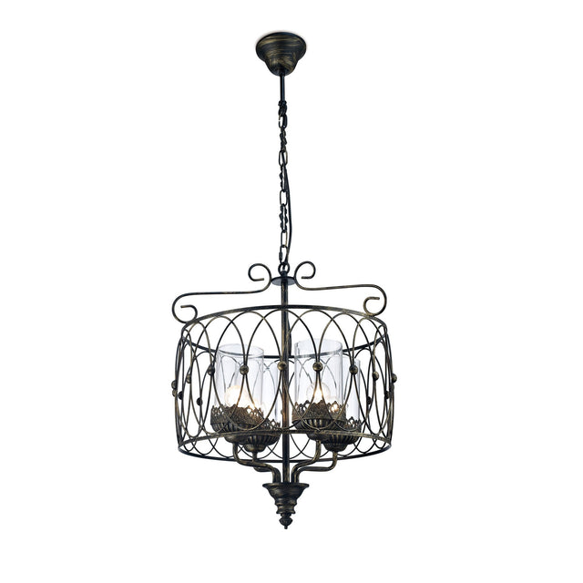 Malcolm 46cm 4 Light Glass Chandelier - Black & Gold