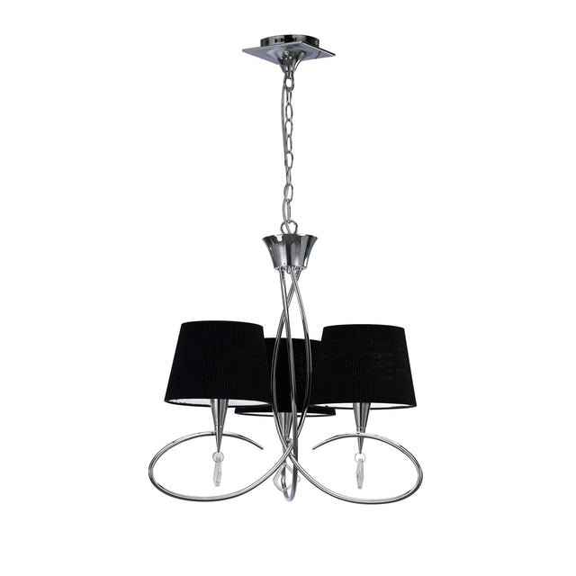 Mara 64cm 3 Light Chandelier - Polished Chrome With Black Shades