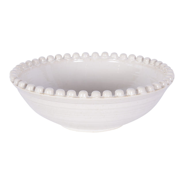 Introducing our Mediterranean Cream Reactive Glaze Ceramic Bowl featuring a creamy hue with delicate round ceramic beading. The enchanting reactive glazing infuses subtle champagne tones into the beads, adding understated luxury.