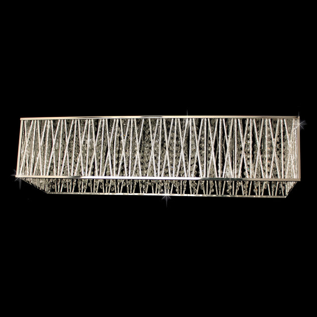 The Melden 8 Light Suspension features a broad linear frame finished in chrome, adorned with dense strands of vertically aligned crystals. The design delivers bold architectural scale balanced by the intricate detailing of its crystal infill. Perfect for wide dining tables, kitchen islands, or formal living spaces, this piece acts as a luminous partition as much as a focal feature. The linear chrome canopy contrasts with the organic scatter of the crystals, introducing structure to the arrangement while allowing light to pass through with clarity and sparkle.