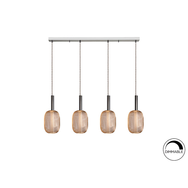 Micron 4 Light Dimmable LED Metal Mesh Bar Pendant 20W 3000K - Gold/Chrome
