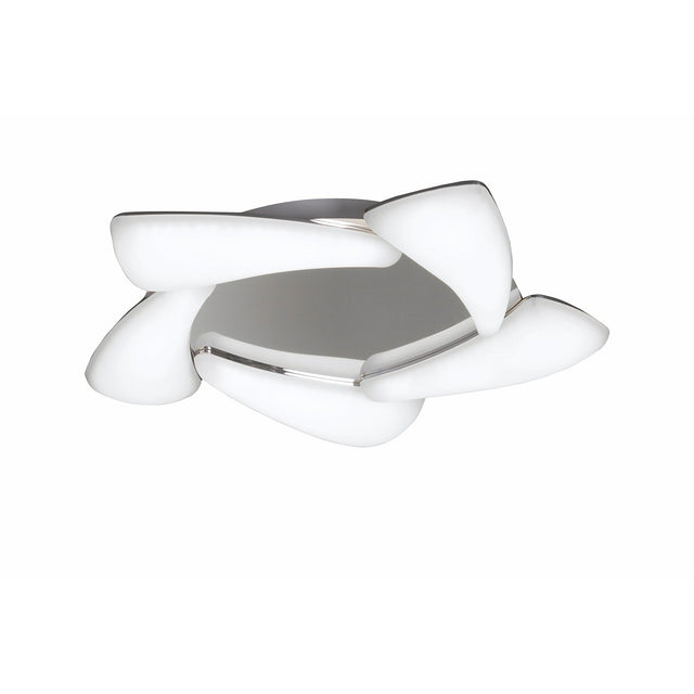 The Mistral LED flush ceiling light offers a modern LED ceiling light solution that combines polished chrome with artistic curved acrylic diffusers to form a striking contemporary statement. Its arrangement of sculpted triangular elements creates an interconnected composition that spreads warm illumination evenly throughout a space. Each diffuser produces a soft glow that blends smoothly with the others, establishing a unified field of ambient lighting ideal for modern homes.