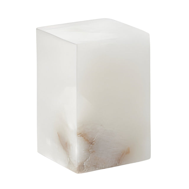 Monvara 2 Light Large Monolith Alabaster Floor Lamp Soft White presents a bold stone presence shaped as a solid geometric column with smooth planes and subtle natural veining. Formed from alabaster and marble with soft white tones, the design creates a monolithic profile that feels both architectural and serene. The generous height and clean edges emphasise the purity of the stone while its translucent properties allow light to pass through in an understated, atmospheric way.
