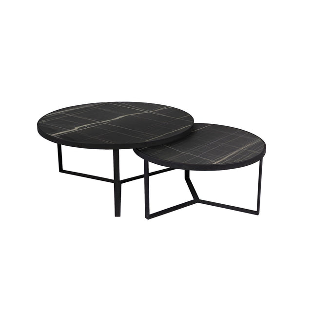 Naira Set of 2 Wood & Metal Tables – Matte Black & Black Marble