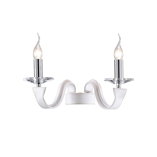 Nardini 2 Light Crystal Wall Light - Chrome With White Leather