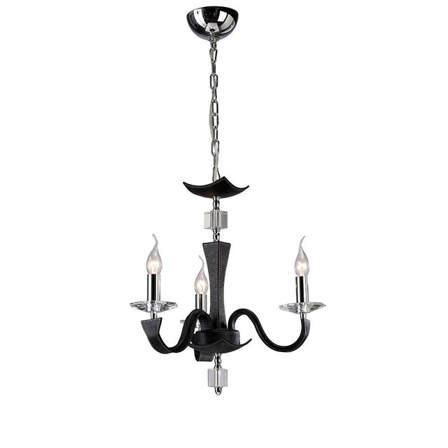 Nardini 50cm 3 Light Crystal Chandelier - Chrome & Black Faux Leather