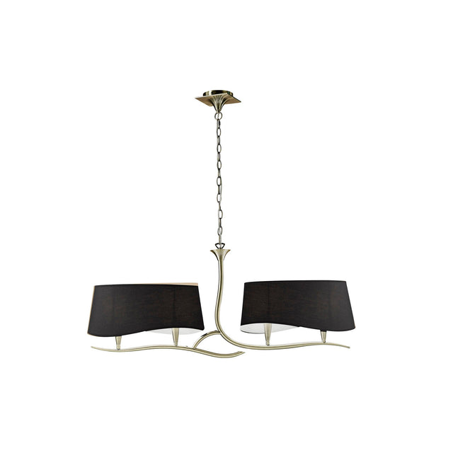 Ninette 2 Arm 4 Light Chandelier - Antique Brass With Black Shades