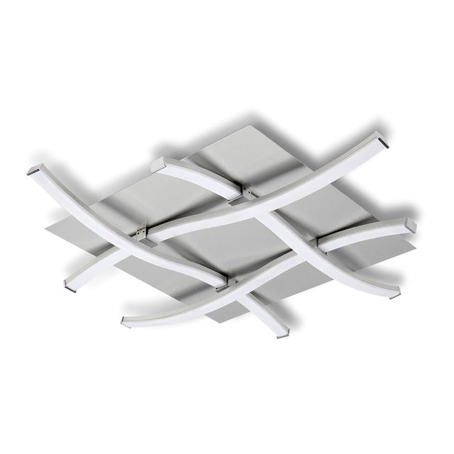 Nur LED Flush Ceiling Light offers a modern flush ceiling light design characterized by intersecting geometric bars finished in radiant silver. The design blends clean architectural structure with subtle sculptural lighting, creating a dynamic ceiling feature that enhances contemporary rooms with style and clarity. The silver finish adds sophistication, reflecting light across its surface and complementing both cool-toned and neutral interior palettes.