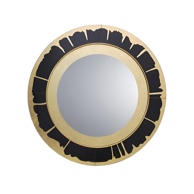 Ocaso Circle Wall Mirror Gold & Black offers bold contrast and refined structure, featuring a central mirror plate encircled by a glass frame with radiant gold leaf and deep black detailing. This luxury wall mirror blends drama with sophistication, making it ideal for interiors seeking a sharp, high-impact focal point. Hung above a console, in a hallway, or featured in a lounge, it enhances the ambiance by reflecting light and grounding the space.