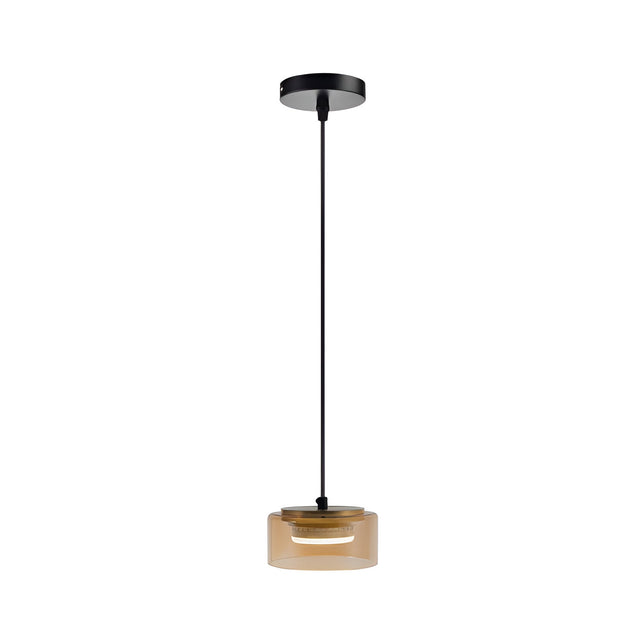 This modern pendant light brings warmth and character to any interior with its unique combination of amber-tinted glass and matte black detailing. The cylindrical shade is crafted from richly colored amber glass that diffuses the light with a soft glow - perfect for creating a cozy, intimate atmosphere. Suspended from a black mount, the fixture embodies clean design and tonal richness, ideal for kitchens, dining areas, or living rooms seeking both functionality and decorative appeal.