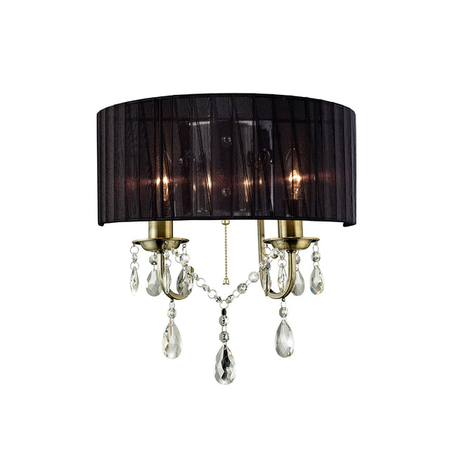 Olivia 2 Light Crystal Wall Light With Switch - Brass With Black Shade