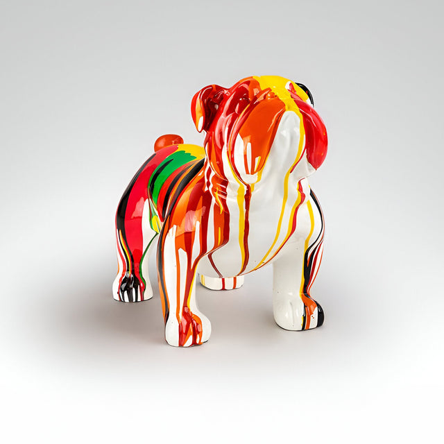 Outdoor bulldog sculpture in pop-inspired multicolour stream finish. Crafted from resin and coated in high-gloss white, this medium-sized piece is decorated with expressive paint drips in saturated hues, making it a sculptural celebration of movement and colour.