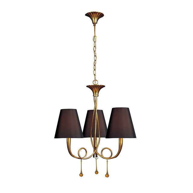 Paola 55cm 3 Light Chandelier - Gold With Black Shades