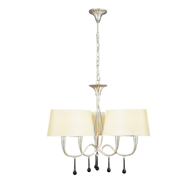 Paola 64cm 3 Arm 6 Light Chandelier - Silver With Cream Shades