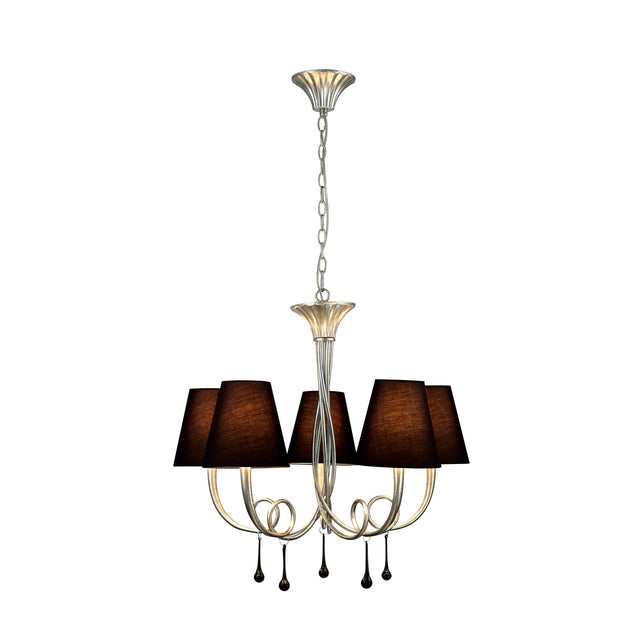 Paola 70cm Round 5 Light Chandelier - Silver With Black Shades