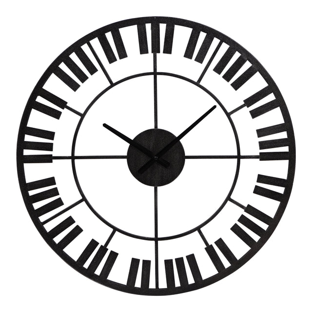 The Piano Skeleton Outdoor Metal Wall Clock is an exquisite timepiece that merges the charm of music with the elegance of design. This clock, crafted from high-quality metal, is ideal for outdoor use, resilient in various weather conditions. Its design is captivating, featuring a skeleton key motif interwoven with piano elements. Its open, airy structure not only allows the wall behind to peek through, adding depth and texture, but also makes it a striking focal point in any outdoor setting. This is a statement piece that harmonizes functionality with creative flair. 60 x 4.5 x 60 (WxDxH cm) Requires AA1 Battery (Battery not included) Please note that this clock produces a gentle ticking sound, adding to its nostalgic charm.