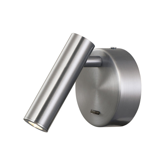 he Prea LED wall light in satin nickel redefines compact lighting with a blend of elegance and efficiency. Its tubular LED arm extends from a matching circular backplate, angled forward to cast a precise warm 3000K glow. The satin nickel finish enhances the design with soft metallic luster, pairing beautifully with modern and transitional interiors. Designed with a slim integrated switch on the backplate, this fixture offers convenience while maintaining a clean look. Fitted with a 3W energy-efficient LED, it provides reliable illumination suitable for reading or ambient lighting. The compact profile makes it a versatile statement fixture for bedrooms, lounges, or hallways. Combining practical functionality with understated sophistication, the Prea Satin Nickel wall light is an essential piece of interior lighting that complements both contemporary and timeless design schemes.