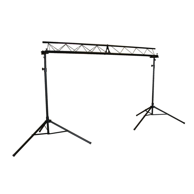 Sturdy lighting stand with 3m wide triangle truss pre-drilled to facilitate mounting on all three sides. Easy to assemble with height adjustment.