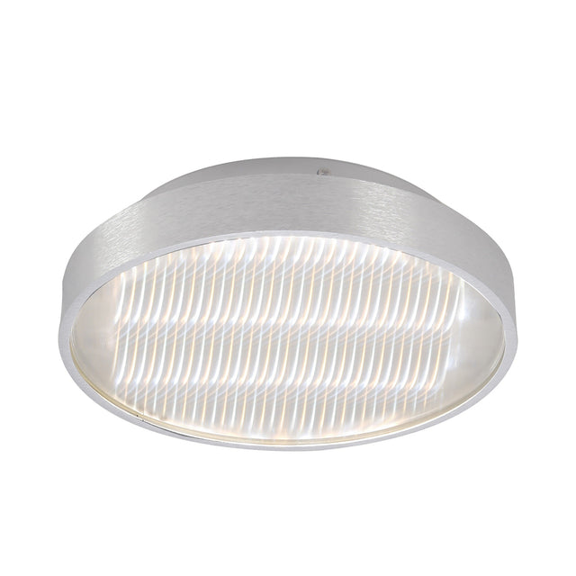 The compact Reflex round LED ceiling light offers contemporary lighting performance in a size ideal for smaller areas, accent lighting, or multi fixture layouts. As a modern LED ceiling light, it features alternating warm 3000K and cool 6000K LEDs behind a textured prismatic diffuser that enhances the appearance of the light when switched on. The ribbed diffuser pattern, visible in the images, creates depth and movement, turning the fixture into a subtle design feature even in understated rooms.