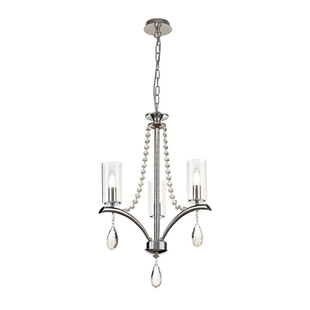 Rhea 50cm 3 Light Crystal & Glass Chandelier - Polished Chrome