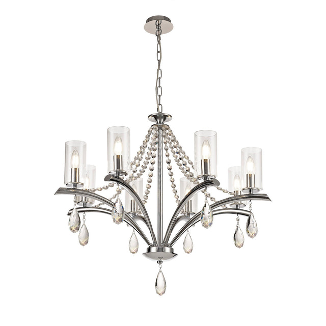 Rhea 80cm 8 Light Crystal & Glass Chandelier - Polished Chrome