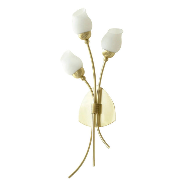 The Rimini 3 Light Opal Glass Wall Light in satin brass combines timeless charm with contemporary refinement, making it an ideal choice for elegant interior wall lighting. Its warm brass frame holds three tulip-shaped opal glass shades that softly diffuse light to create a welcoming atmosphere. Perfect for living rooms, dining spaces, or hallways, this fixture brings gentle ambient illumination while acting as a subtle design statement. The brass finish introduces warmth and depth, pairing beautifully with both classic and modern interiors. Its sculptural arms curve gracefully, lending a sense of movement and artistry to the design. Rimini’s opal glass shades enhance comfort by casting a gentle, inviting glow without glare, making it an excellent choice for creating mood-enhancing ambient lighting. This wall light is perfect for homeowners who want to add refined sophistication to their interiors while maintaining a balance between style and function.