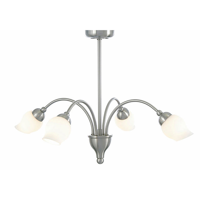 Rimini 51cm 4 Light Opal Glass Chandelier - Satin Chrome