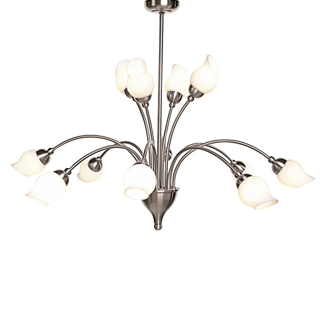 Rimini 69cm 12 Light Opal Glass Chandelier - Satin Chrome
