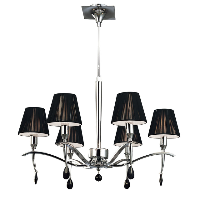 Siena 63cm 6 Light Black Crystal Chandelier - Chrome With Black Shades