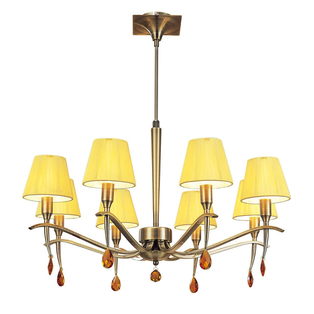 Siena 75cm 8 Light Amber Crystal Chandelier - Brass With Amber Shades