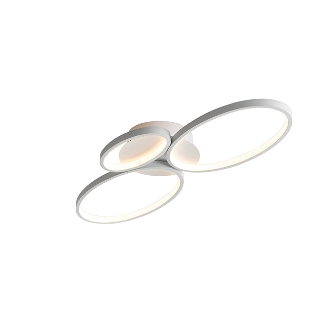 The Sios Semi-Flush Ceiling Light in sandblasted white is a sleek and contemporary lighting feature defined by its sculptural simplicity. Formed by three interlocking ovals with integrated LEDs, the design appears weightless while adding dimension and movement overhead. The aluminium and metal frame is finished in a smooth sanded white, complemented by silicone diffusers that emit a soft, even glow.
