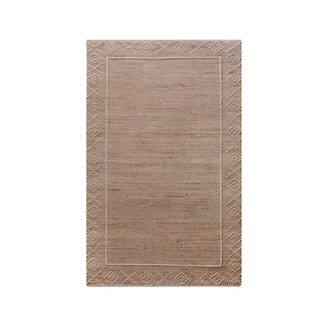Our Templin Jute and Wool Rug is handwoven in India using traditional techniques. Jute is the perfect material for a rug because it is highly sustainable and rapidly renewable, as well as being very durable. Designed with a contrast wool geometric border design, the Templin rug has a neutral feel and would suit most interior styles.
