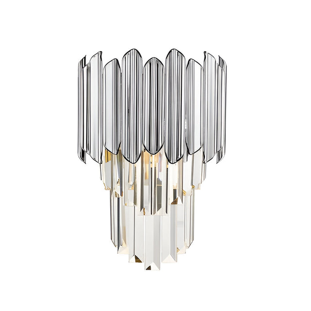 The Tiara LED wall light in transparent chrome brings architectural brilliance and contemporary precision to any space. Built from chromed metal and detailed with sharply faceted glass prisms, this fixture delivers ambient lighting with dramatic presence. The chromed ABS detailing reinforces the design’s sleek character while maintaining a light, reflective profile.