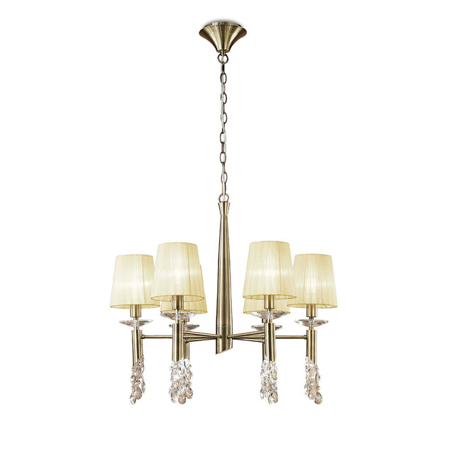 Tiffany 12 Light Crystal Chandelier - Brass With Cream Shades
