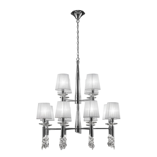 Tiffany 2 Tier 24 Light Crystal Chandelier - Chrome With White Shades