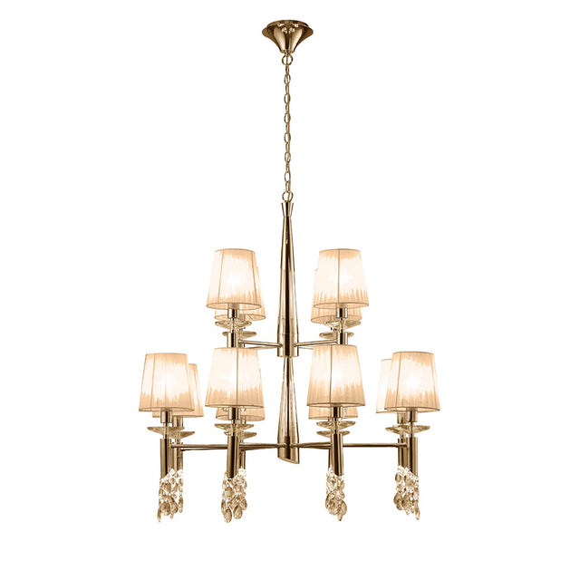 Tiffany 2 Tier 24 Light Crystal Chandelier - Gold With Bronze Shades