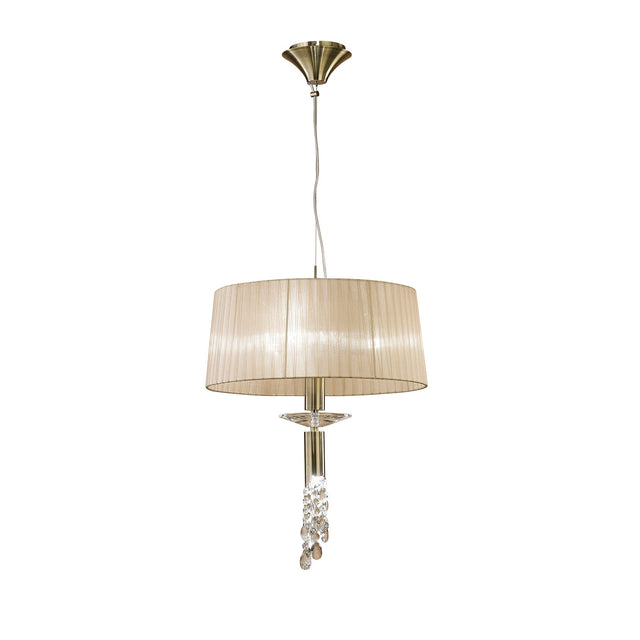 Tiffany 4 Light Crystal Pendant Light – Antique Brass With Soft Bronze Shade