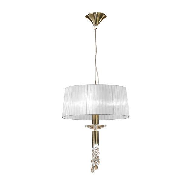 Tiffany 4 Light Crystal Pendant Light – Antique Brass With White Shade