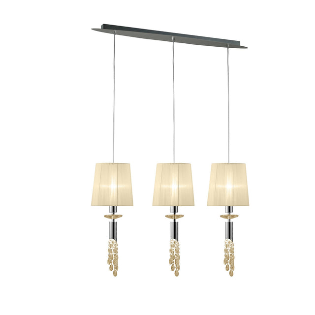 Tiffany 6 Light Crystal Bar Pendant Light - Chrome With Cream Shades