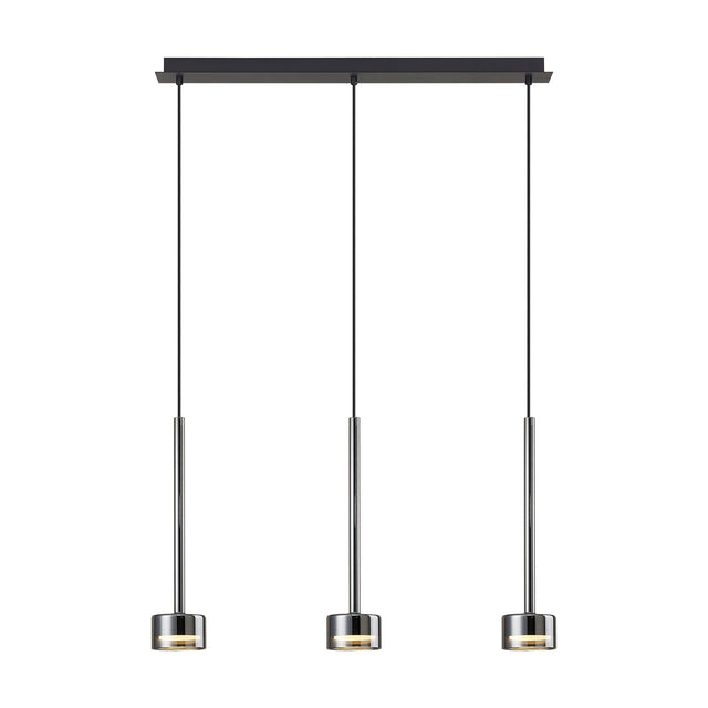 Tonic 3 Light Dimmable LED Glass Bar Pendant Light 3000K - Chrome & Black