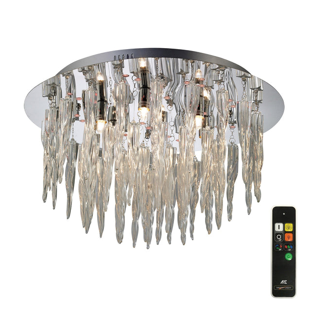 Tropez 6 Light Glass Flush Ceiling Light With RGB & Remote Control – Polished Chrome