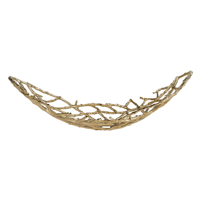 Handcrafted metal twigs design made by skilled artisans using various techniques, such as hammering, bending, twisting, have created realistic shapes formed into a decorative bowl shape. This item is also available in other sizes and a matt black and matt gold finish and it sits alongside bowls, sculptures, and pillar holders. Decorative use only. Please note this item is not food safe and is suitable for decorative use only.