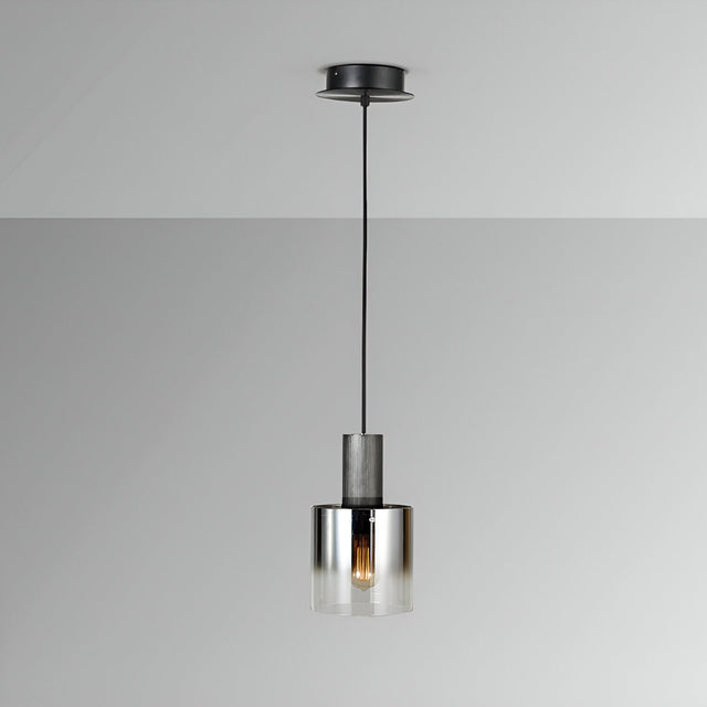 Venize Glass Pendant light fuses bold design with ambient sophistication, making it a compelling lighting solution for contemporary interiors. The fixture features a dual-layered smoked glass shade - blurred and slightly tinted - creating a striking silhouette while softening the emitted light into a gentle, ambient glow. Its cylindrical form is suspended by a slim textile cable and capped with a satin black canopy, offering an elegant balance of industrial and refined aesthetics.