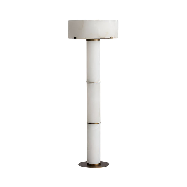 Virex 1 Light Tiered Column Alabaster Floor Lamp Soft White introduces a refined alabaster floor lamp concept shaped around gentle architecture and warm illumination. Its form is built from stacked alabaster segments supported by brushed brass accents, creating a sculptural vertical column that combines natural stone patterning with contemporary design. The composition feels smooth and continuous, giving the lamp a sense of quiet rhythm that enhances interior lighting while remaining visually calm.