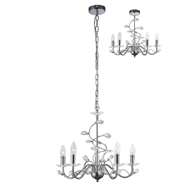 Willow 5 Light Crystal Chandelier - Polished Chrome (Without Shade)