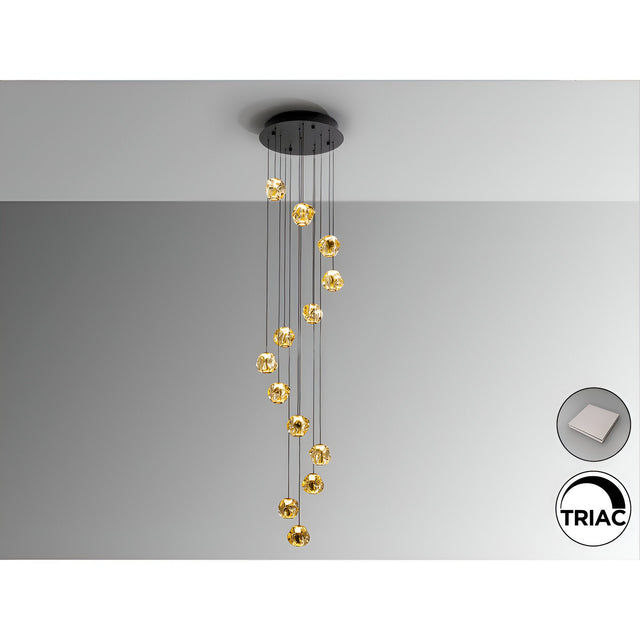 Zaria 13 Light Dimmable LED Cluster Pendant - Black/Gold (With Remote Control)